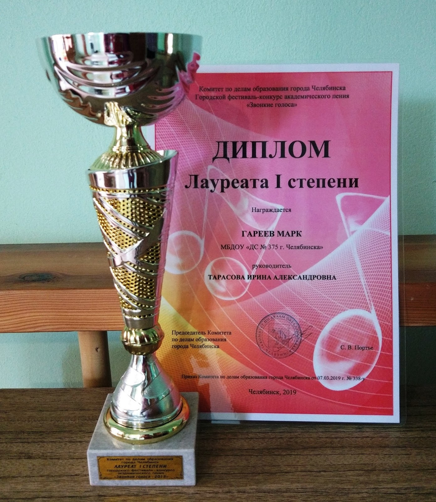 В Челябинске завершились конкурсные прослушивания городского фестиваля-конкурса академического пения "Звонкие голоса". Его участникам были юные талантливые вокалисты, воспитанники детских садов, общеобразовательных школ и учреждений дополнительного образования города. Конкурсные прослушивания длились больше месяца.Мы в этом году решили впервые участвовать в конкурсе и ....ОДЕРЖАЛИ ПОБЕДУ! 1 место среди воспитанников дошкольных учреждений занял Марк Гареев, группа №2 "Звёздочки", руководитель Тарасова Ирина Александровна. 14 марта 2019 года Гала-концерт, в котором ученик нашего музыкального руководителя выступал с песней М.Славкина "Кого уважаю" состоялся в хоровой школе "Гармония".